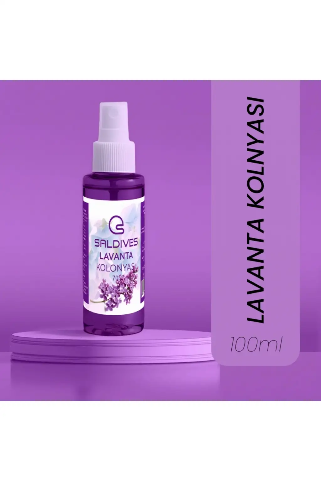 Saldives markasının özel üretimi Lavanta Kolonyası 100 ml, ferahlatıcı ve tazeleyici etkisiyle öne çıkıyor.; Doğal Lavanta özleri ile zenginleştirilen bu kolonya, cildi nazikçe temizlerken ferah bir his bırakır.; Özel formülü sayesinde gün boyu tazelik ve hijyen sağlar.; Pratik boyutuyla yanınızda taşımak için ideal bir seçenektir.; Ofis, seyahat ya da günlük kullanım için uygundur.; Saldives Lavanta Kolonyası 100 ml, kaliteli içeriği ve hoş kokusuyla öne çıkarak günlük bakım rutininizin vazgeçilmezi olmaya aday!