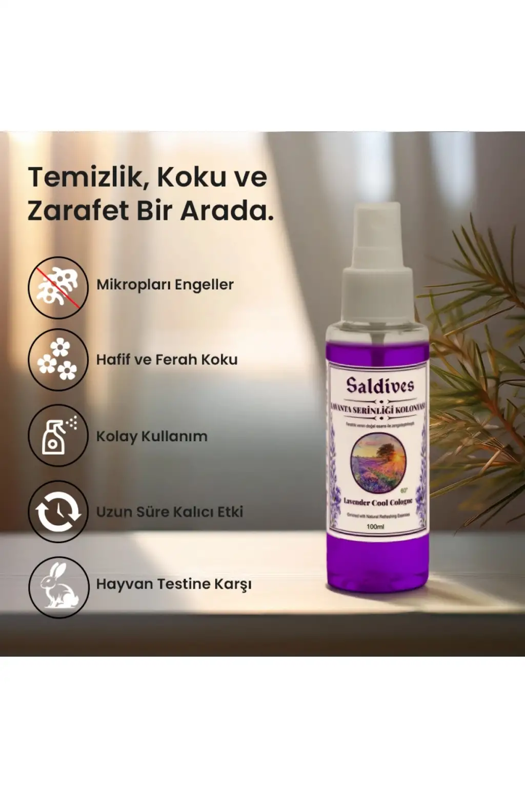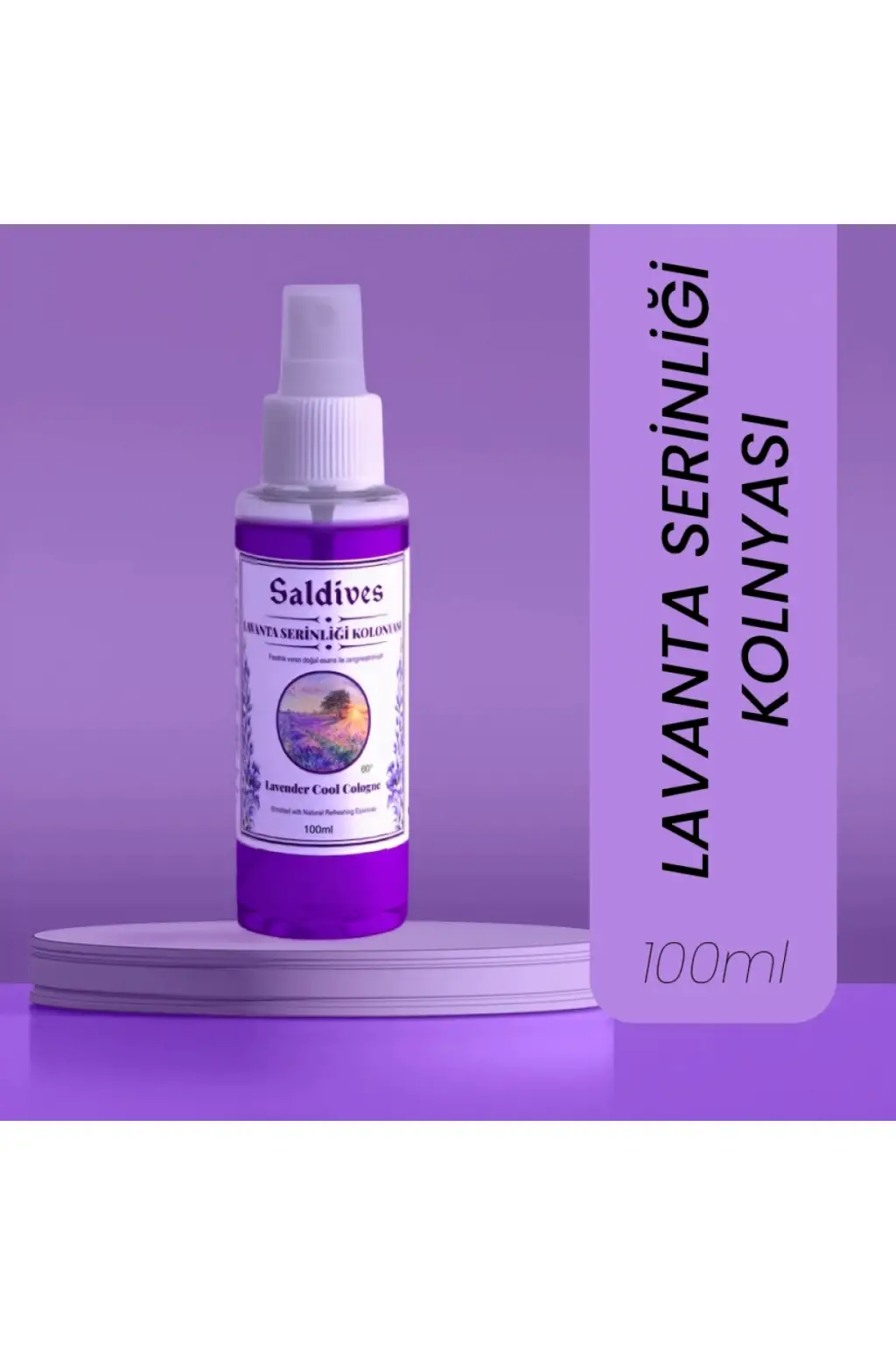 Saldives Lavanta Serinliği Kolonyası, ferahlatıcı ve hoş bir kokuya sahip olan 100 ml boyutunda bir kolonyadır.