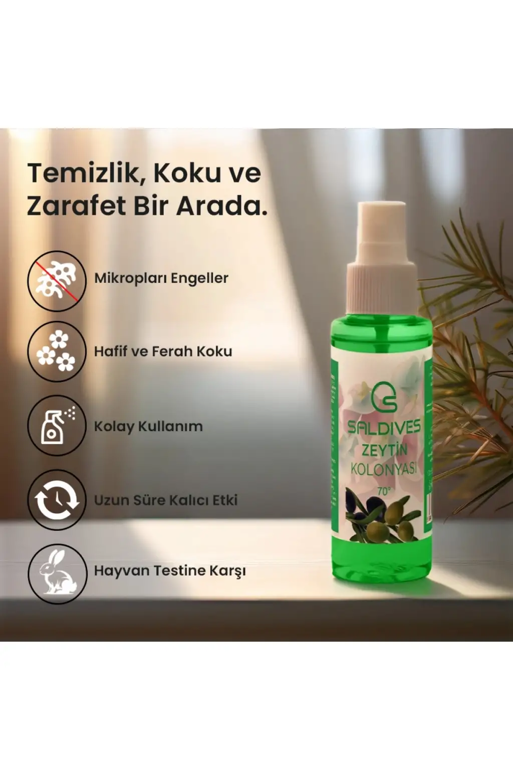 Saldives markasının özel üretimi Zeytin Kolonyası 100 ml, ferahlatıcı ve tazeleyici etkisiyle öne çıkıyor.; Doğal Zeytin özleri ile zenginleştirilen bu kolonya, cildi nazikçe temizlerken ferah bir his bırakır.; Özel formülü sayesinde gün boyu tazelik ve hijyen sağlar.; Pratik boyutuyla yanınızda taşımak için ideal bir seçenektir.; Ofis, seyahat ya da günlük kullanım için uygundur.; Saldives Zeytin Kolonyası 100 ml, kaliteli içeriği ve hoş kokusuyla öne çıkarak günlük bakım rutininizin vazgeçilmezi olmaya aday!